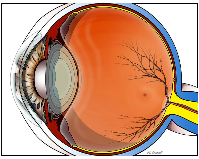 La retina si trova nel segmento posteriore dell’occhio ed ha il compito di ricevere le immagini del mondo esterno e di trasmetterle al nervo ottico. Metaforicamente, la retina è paragonabile alla pellicola di una macchina fotografica tradizionale. La parte più importante della retina dal punto di vista visivo è la macula. Quando la macula si ammala, la condizione prende il nome di maculopatia.